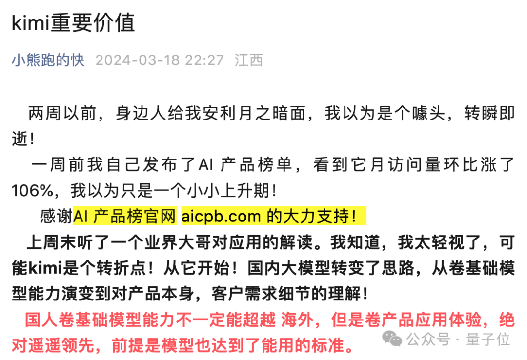 尤其產品應用體驗方面,一直被視為國產市場的強項。有聲音還認為,Kimi或許就是一個轉折點,接下來國內大模型市場的思路可能要從基礎能力演變轉向對產品本身、客户需求細節的理解。