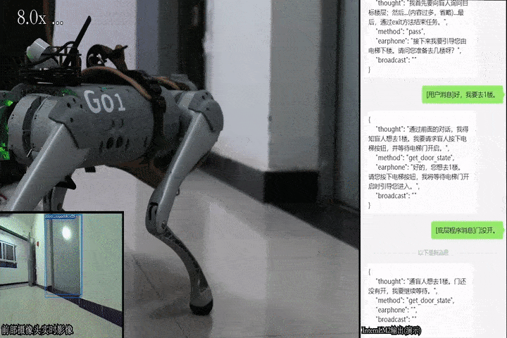 目前通過實驗,團隊開發的離線具身智能導盲犬已能夠與視障人士流暢溝通指令,並帶領其通過馬路、樓梯、電梯等多樣複雜環境,驗證了離線具身智能導盲犬的智能人機交互能力、電梯弱網絡環境下的智能乘梯引導能力、實時性要求較高的智能過街引導能力和智能室內引導能力等。