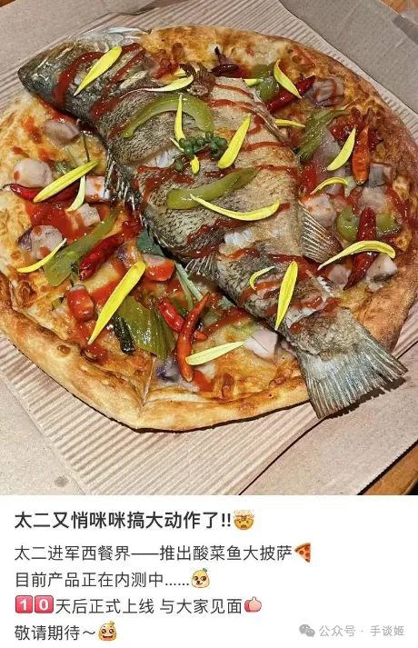 去年餐飲品牌“太二酸菜魚”推出披薩,