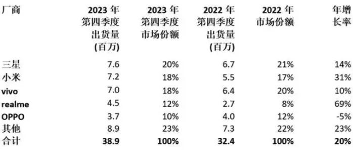 也不能完全這麼説,咱們再拿手機行業舉個例子,之前被折騰得死去活來的小米和中國手機廠商們,其實到現在都還混得不錯,**小米在重壓之下,****2023 年四季度竟然還增長了 31% ,**真的一點毛病沒有。