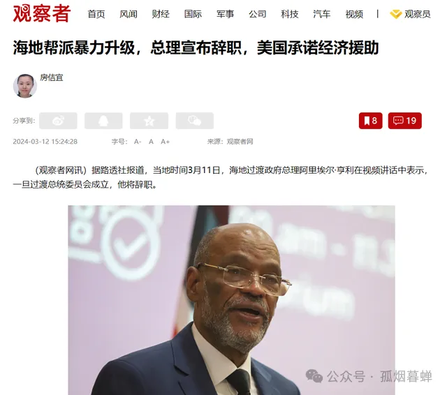 由於當地暴力衝突持續延燒,街頭幫派戰爭不斷升級,當地時間3月11日,海地過渡政府總理阿里爾·亨利在視頻講話中表示,一旦過渡總統委員會成立,他將辭去總統之位。自2021年海地時任總統莫伊茲遭遇刺殺以來,亨利一直擔任着海地總統一職。別看他幹到現在也就才短短3年,可就在這短短3年時間裏,亨利卻讓早就百業凋零、民不聊生的海地愈加地烏煙瘴氣,以至於海地國內民怨沸騰,諸多地方豪強都恨不得將其除之而後快,甚至是食其肉、寢其皮。