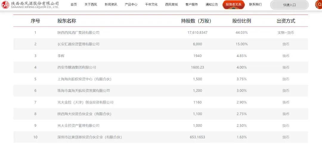 經歷了四次上市失敗的西鳳酒選擇增資控股,近期公司官網披露的十大股東名單顯示,一個新的身影出現了。