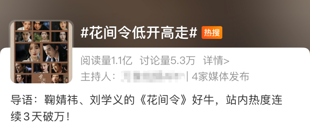 拿《花間令》來説,客觀上講,跟劇情發展也有關係。