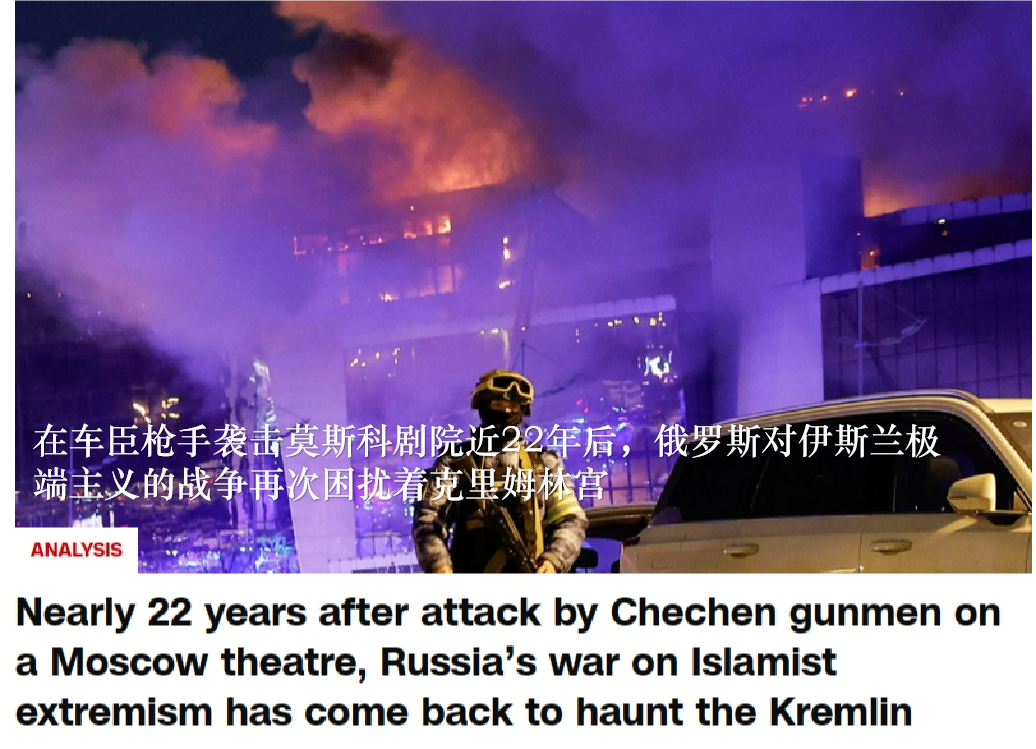 如上,是美國媒體在莫斯科血案發生後,對相關事件分析報道的主基調之一。另外兩個主基調:一是莫斯科恐襲暴露普京當局無能,保護不了俄羅斯人;二是恐襲與烏克蘭無關。