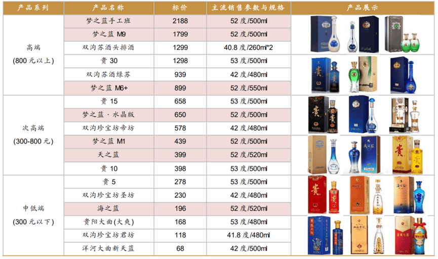 其實,從100元-200元價格帶的“王者”海之藍,到200元-400元左右在江蘇以外湖北、江西等市場頗為認可的天之藍,以及次高端軸心夢6+,甚至是面向年輕時尚消費羣體的微分子,依託洋河、雙溝、貴酒三大核心品牌,洋河產品的價格帶覆蓋十分全面,亦有獨特的綿柔香型定位。