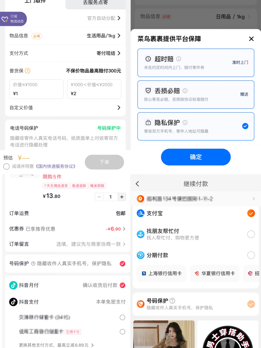 甚至淘寶、抖音等主流電商平台,也會在用户購物時的下單界面默認勾選“號碼保護”功能,即“隱藏收件人真實手機號、保護隱私”。