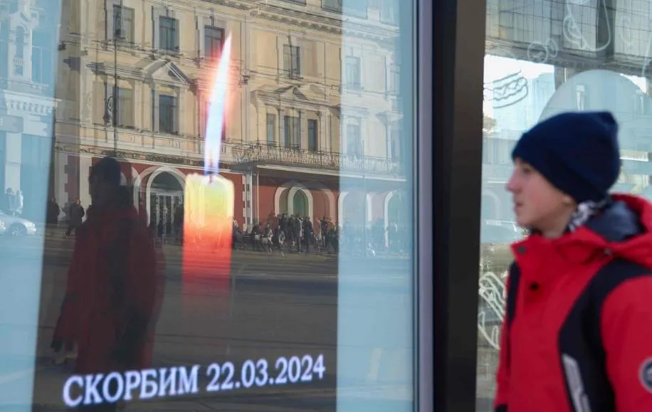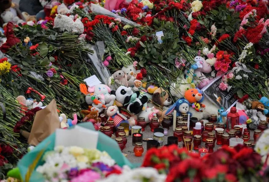 3月24日,俄羅斯舉國為22日莫斯科近郊恐怖襲擊遇難者哀悼。在莫斯科,克里姆林宮、俄聯邦政府、俄聯邦委員會、俄國家杜馬等建築均降半旗致哀,多處電子屏幕和廣告牌都換成了寄託哀思的燭光圖案,綿綿陰雨更令氣氛顯得沉重。