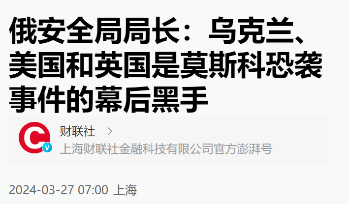 現在大家知道為什麼在恐襲發生後普京立刻將矛頭對準烏克蘭了吧?也知道烏克蘭為什麼死活不承認是它們策劃恐襲了吧?