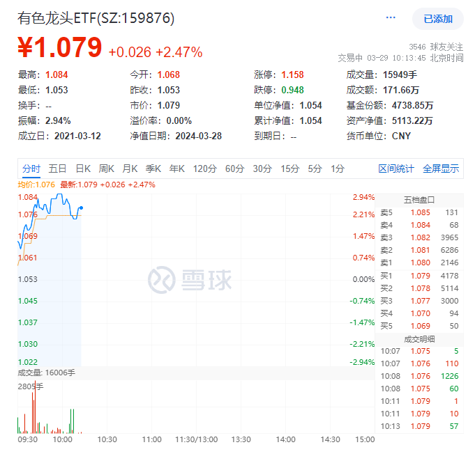 黃金再受熱捧,有色龍頭ETF(159876)盤中飆漲近3%!_風聞