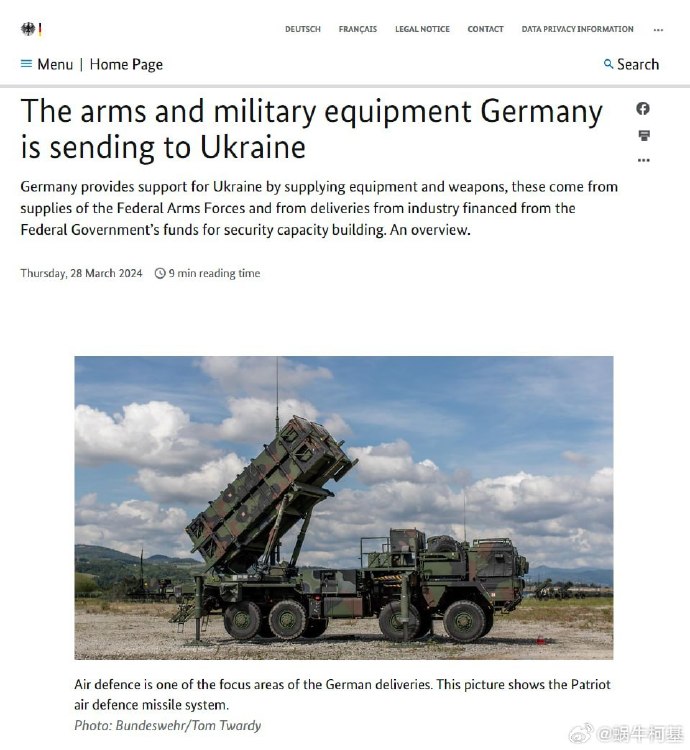 德國宣佈了一項針對烏克蘭的新的重大軍事援助計劃,包括:
