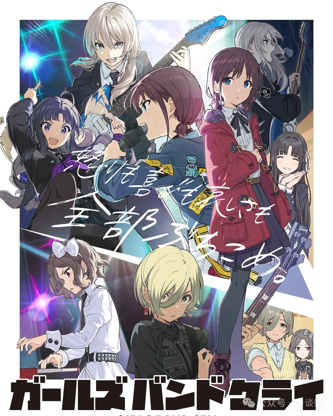《GIRLS BAND CRY》,原創動畫,東映的少女樂隊企劃。主視覺圖很酷,但其實是3D動畫,由於去年某部3D少女樂隊動畫在國內大火,被一些人稱為是“代餐”,或許因此有一定的期待度。B站官方up“東映動畫”搜索該動畫標題有試聽MV,可以先聽聽看是否符合口味。