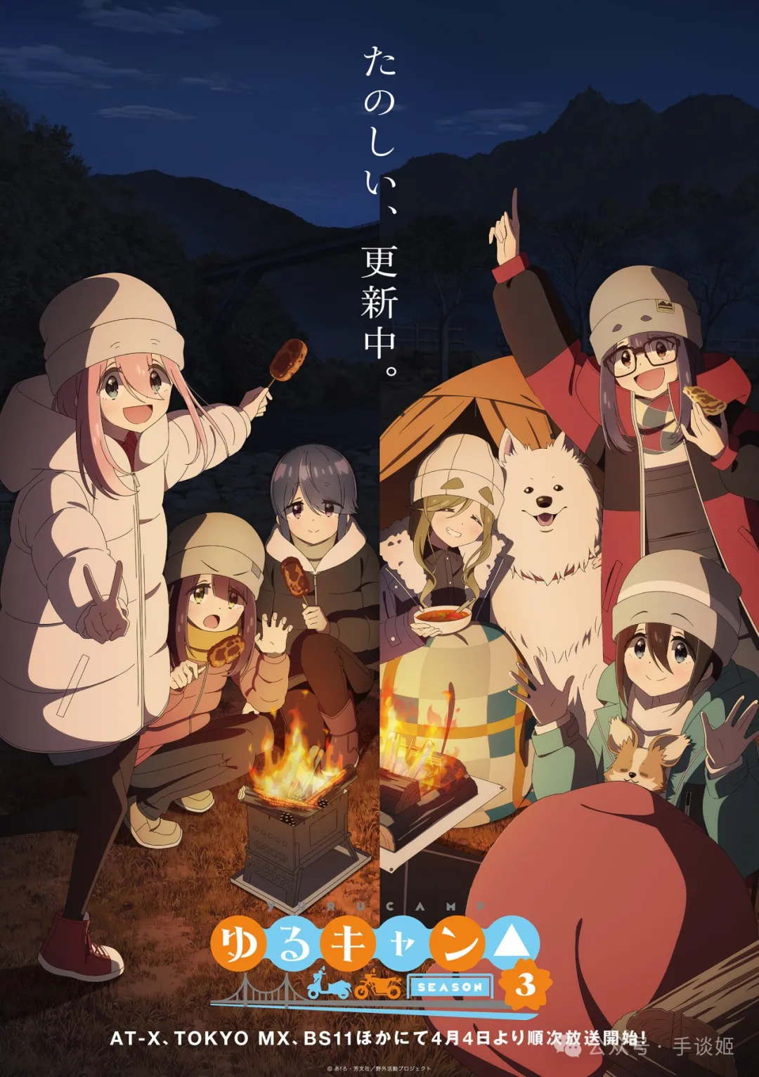 《搖曳露營△ 第三季》,漫改,換了新的製作公司,畫風也更貼近漫畫目前的感覺,人物更加修長一些。畫風倒無所謂,手談姬對《搖曳露營》劇場版電影的意見很大,《搖曳露營》手遊更是滿滿的敗好感,有種喜歡的東西不乾淨了的感覺。根據先行看完試映的網友表示,觀感還是不錯的,但是姬知道這些女子高中生工作的樣子哦你敢信?