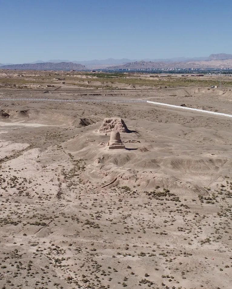在新疆坐火車一路南下,即將抵達喀什之時,若向窗外眺望,就會瞥見遠處大漠中,矗立着兩座並列的“土墩子”。