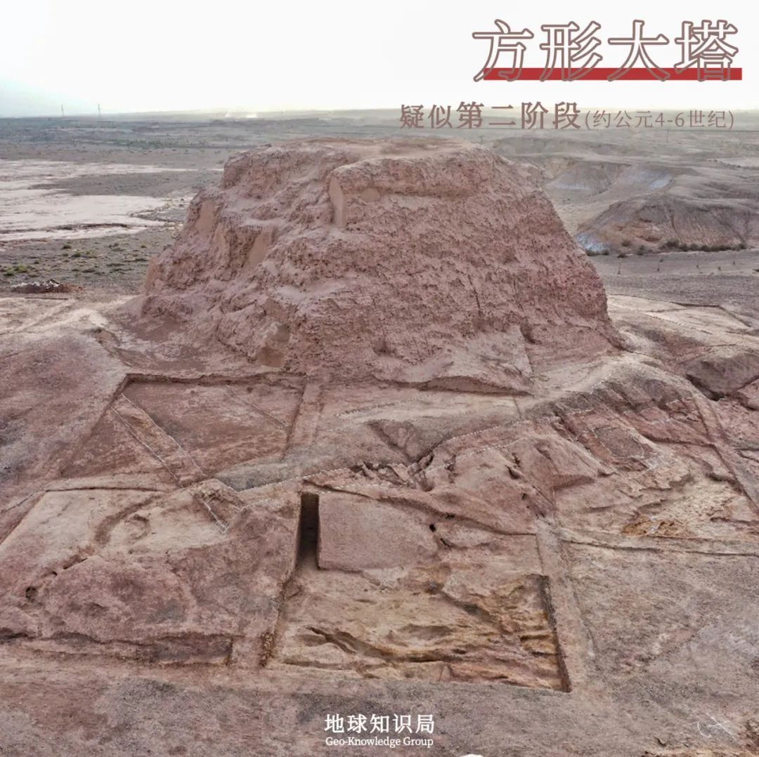 中期(第二階段,約公元4-6世紀),增修塔里木盆地流行的**“回”字形佛殿、廚房等建築,構建出中心廣場**。方形大塔可能修建於這一階段,但因獨立於外且無連續地層,不排除更早或更晚的可能。佛教信仰從以舍利塔崇拜為中心向以佛像崇拜為中心轉變,供奉的佛像形體較小。