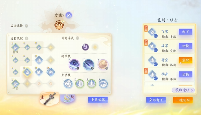 就好像同樣是桃花島,主手帶輕劍平時可以當奶媽,副手帶個重劍,切換後就可以搖身一變成為輸出職業了。