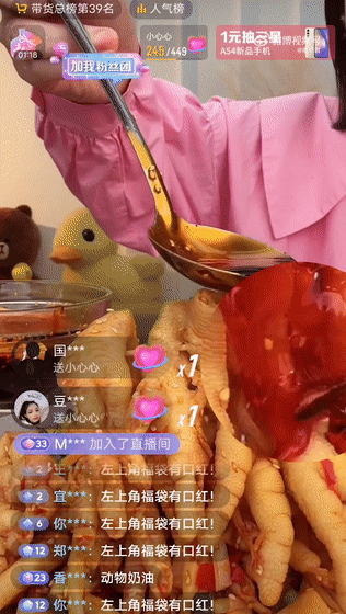大胃王密子君在直播間賣雞爪時,就出現了“詭異”的一幕: