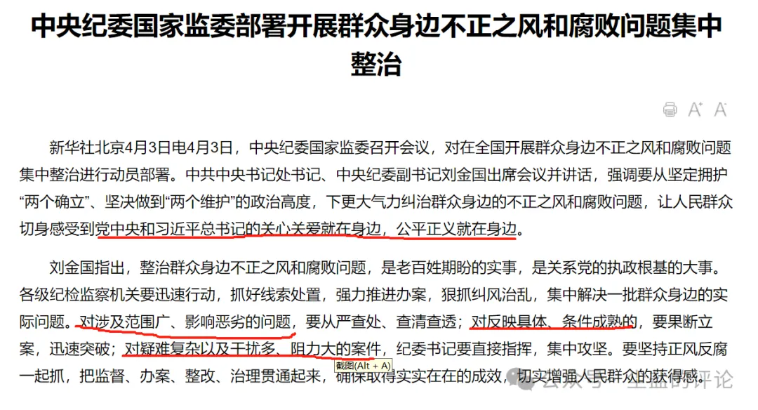 在我看來,這個行動反映出,現在開始重視反腐的社會效應了。以前主要是重視其政治效應,如針對高級幹部的“團團夥夥”、決策執行上的陽奉陰違、高層政商勾結形成利益集團等等問題。