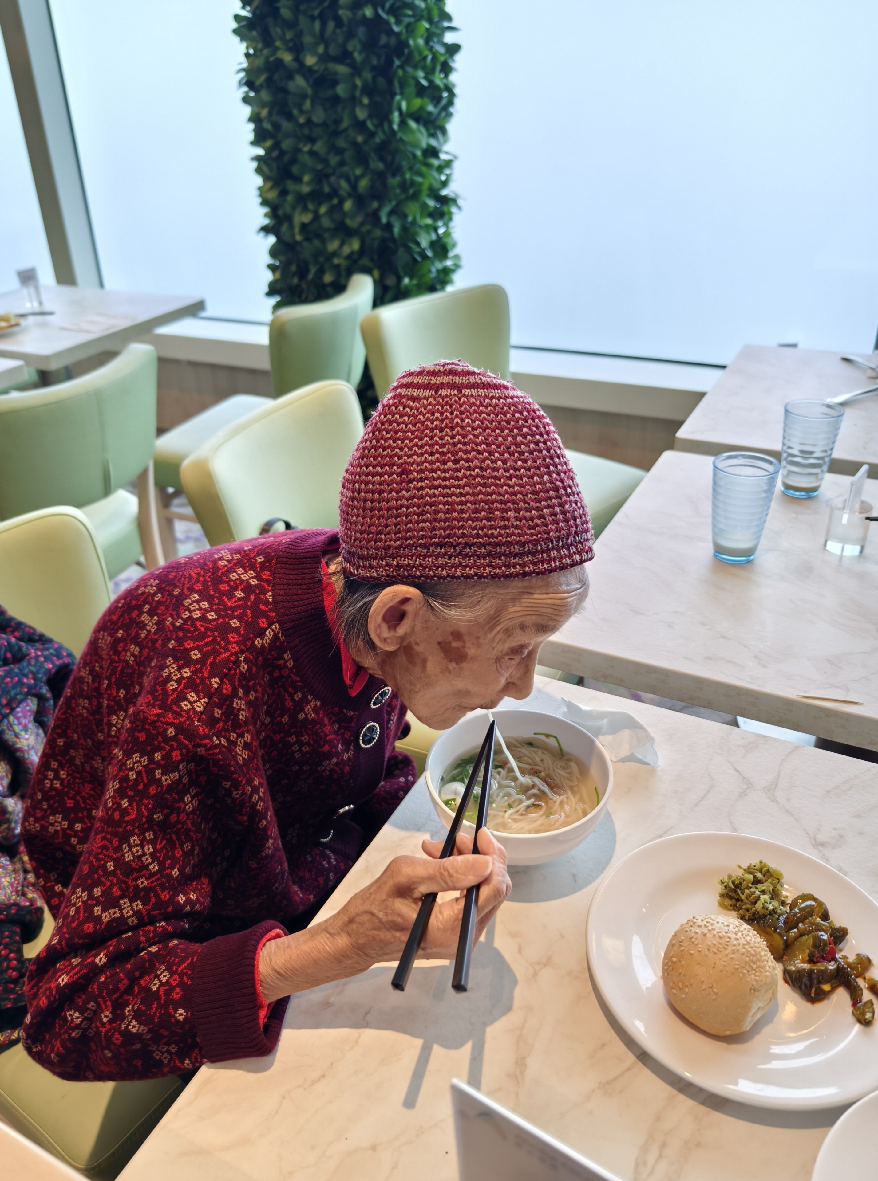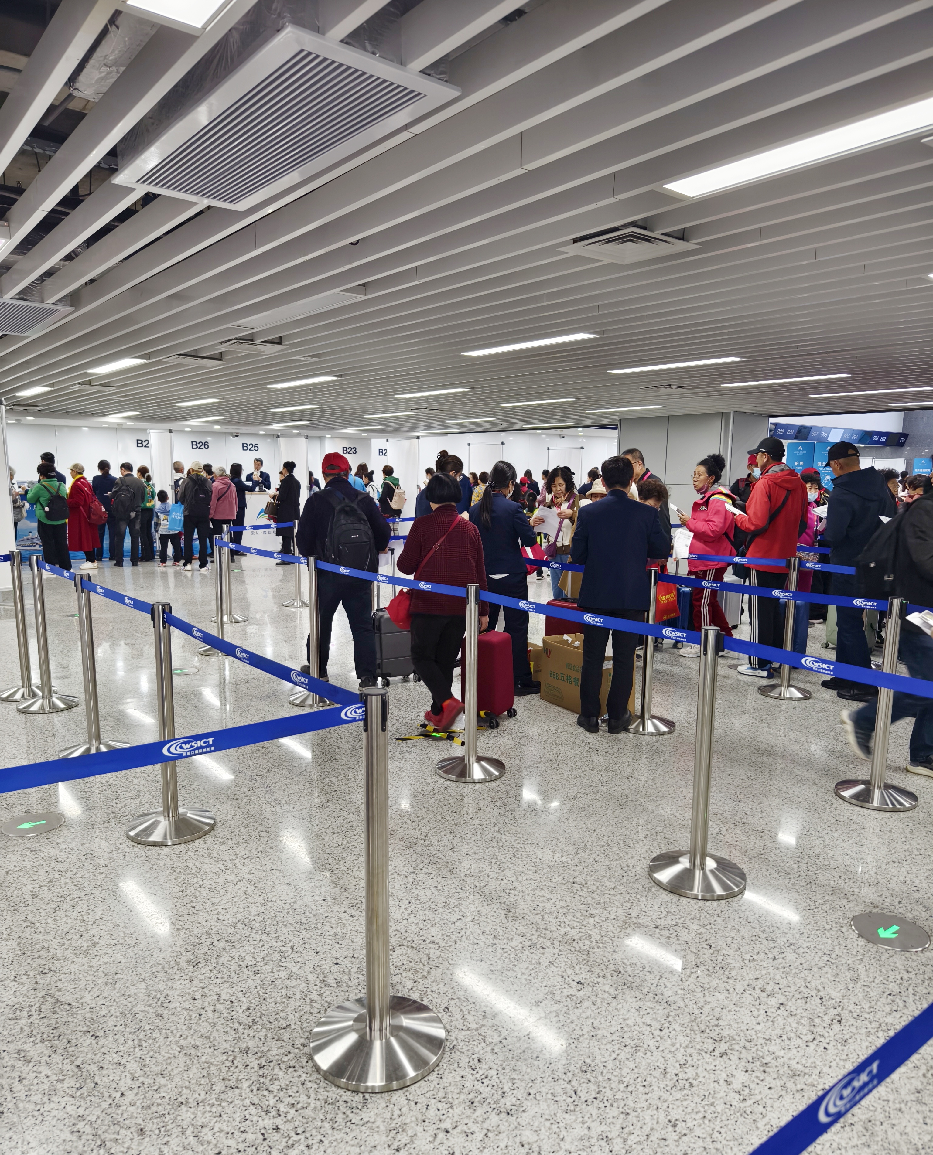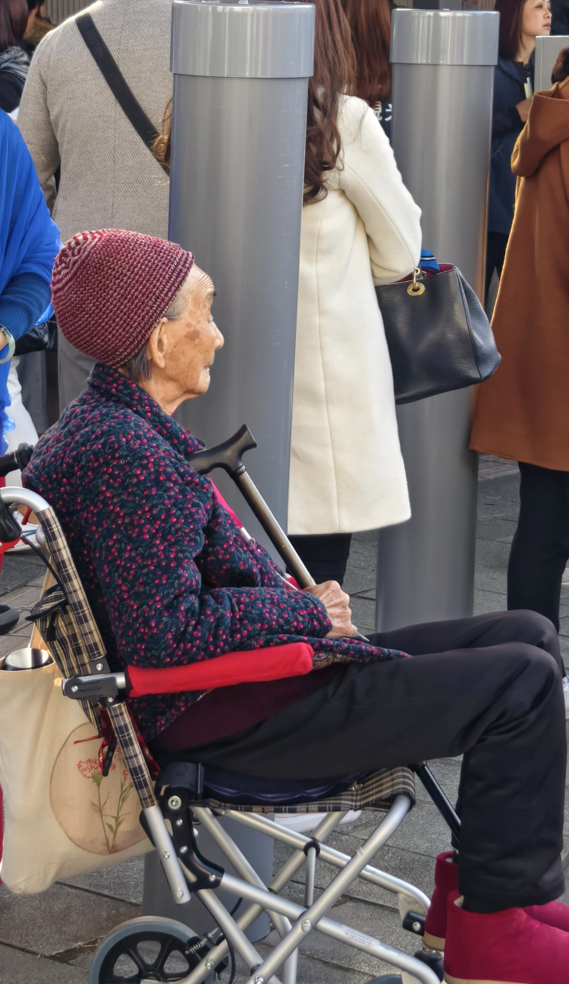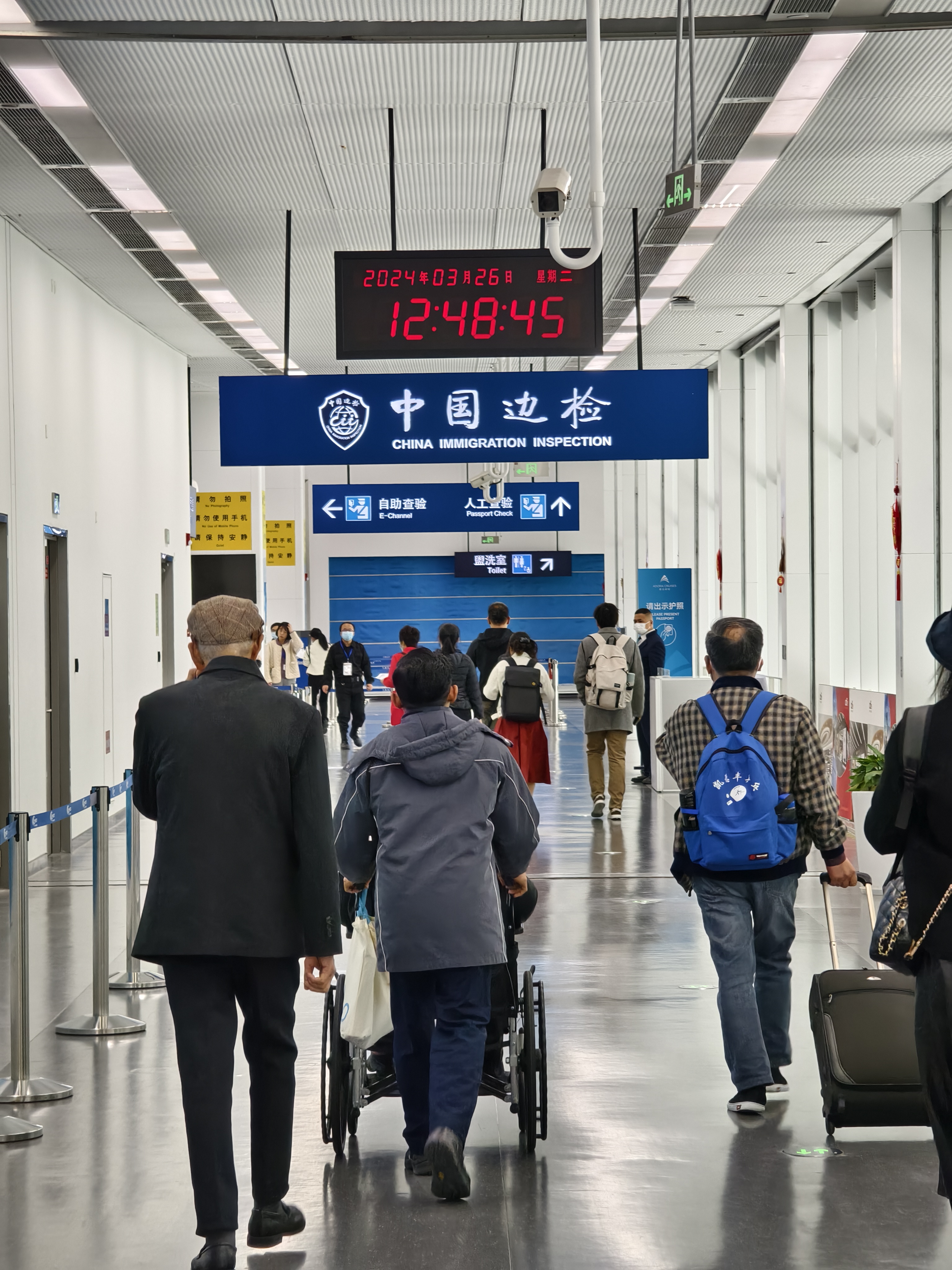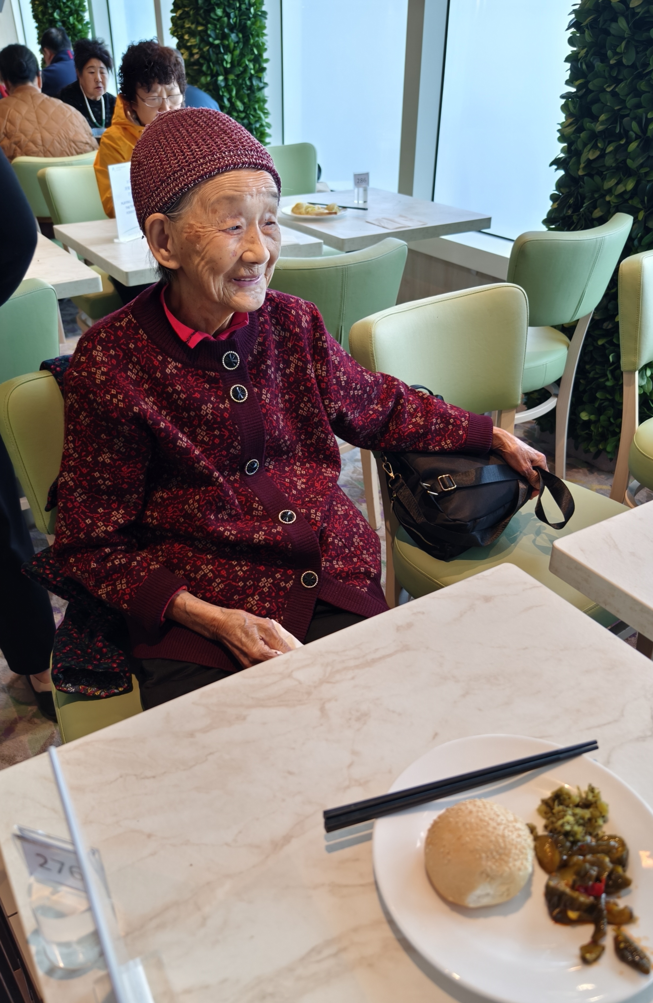 本次航班郵輪上還有97歲以及八十多歲高齡老人在家人陪同下出遊。郵輪的特色或優勢之一就是便於中老年尤其是高齡老人的出遊。這次我們也帶着兩位80多歲的老人乘坐魔都號郵輪出遊,其中一位老人十幾天前剛做過膝關節半月板微創手術,因為郵輪船票是幾個月前預訂好的,所以在恢復差不多的情況下,還是按計劃乘坐郵輪出遊--在郵輪上的活動以及上岸觀光基本上都是坐輪椅的。輪椅可以自帶上船,也可以在船上免費借用一直到離船。另外,上船前,在碼頭候船大廳進入“辦理登船+拍照”區域的閘口內後,可以借用輪椅,該輪椅在出了海關區域後,由相關工作人員把輪椅推回去(服務很好)。然後,可當即換乘另外的輪椅,這個輪椅由郵輪上的工作人員來推着走,一起過邊檢後,一直將輪椅推到郵輪上的相關艙房門口(服務很好)。其實,本人在預訂郵輪船票前,根據我們老人的身體情況,已分別向上海、寧波一些旅行社諮詢過能否坐飛機出國遊,最終的答覆都是不接待。但坐郵輪可以。郵輪--讓很多高齡老人或不宜坐飛機的人們實現了出遊的願望。