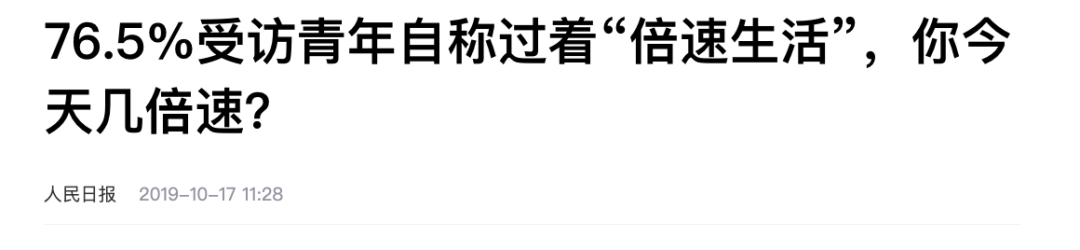 中國青年報曾對1993名18~35週歲年輕人進行一項調查,結果顯示,76.5%的受訪者稱自己過着“倍速生活”,83.1%的受訪者坦言自己每天忙忙碌碌但收穫不及預期。這種生活在日本更是被形象地描述為“跑步人生”。