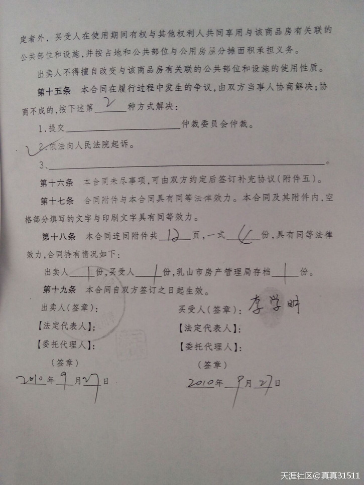 我們向乳山市人民政府反映房地產開發公司收了房款不給購房合同的欺詐行為,乳山市房管部門説有合同!經我們向中央人民政府和省人民政府反映情況,索要合同!乳山市房管理部門終於寄來了偽造的合同!