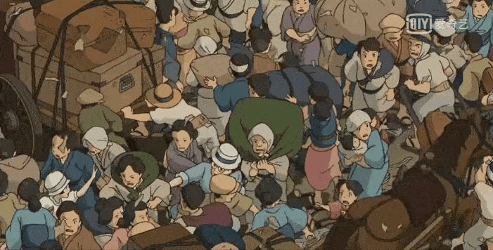 《起風了》中,有一個地震中,人羣四散的畫面。