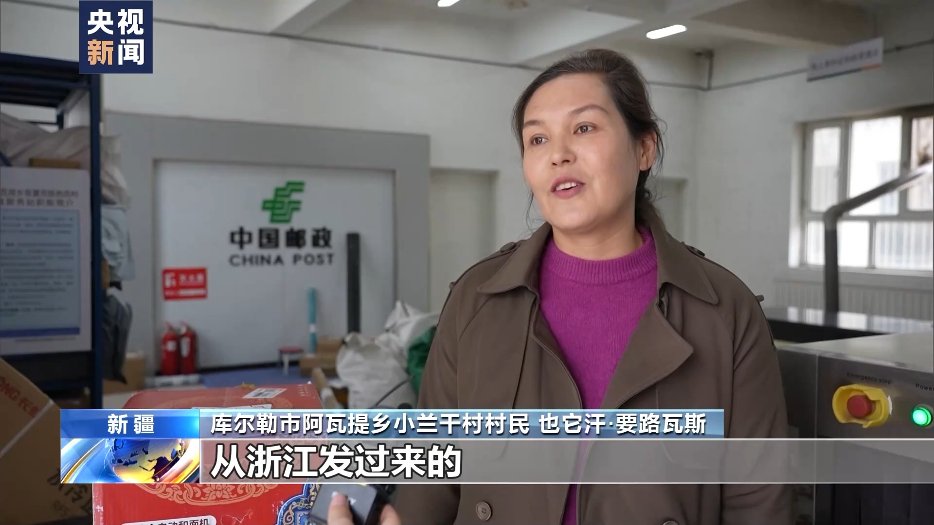 **庫爾勒市阿瓦提鄉小蘭幹村村民也它汗·要路瓦斯:**我在網上買了一個和麪機,從浙江發過來的。過去拿快遞只能到鄉里,現在直接到家門口,當天我就拿到手。