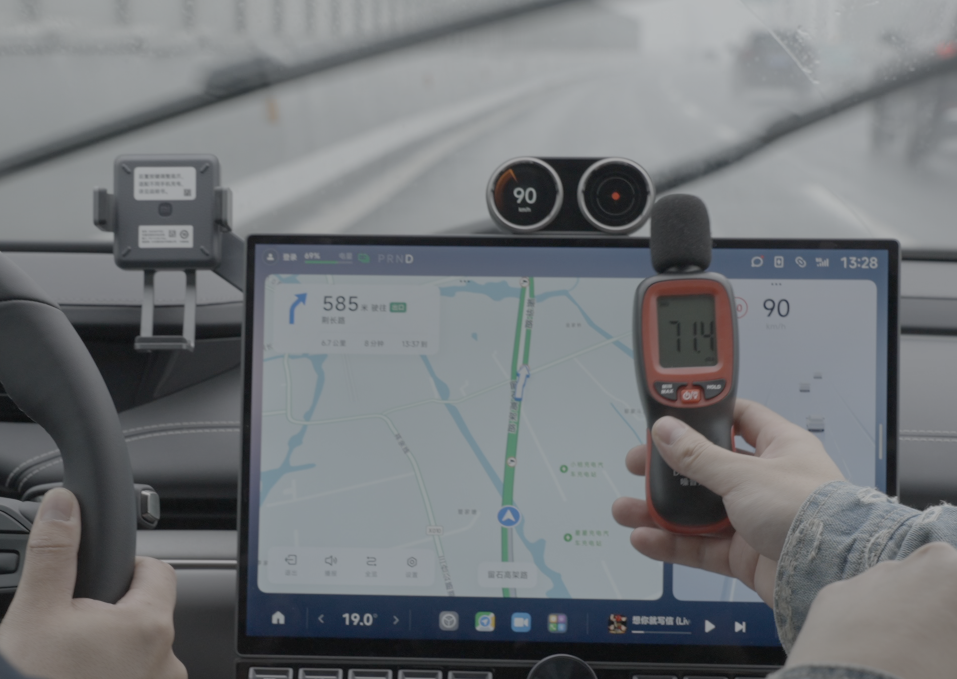 不算特別優秀,在時速 90 的時候,測得車內噪音最高會達到 70dB,不過它也沒到無法接受的水平,這個時速車內説話還是聽得很清楚的。SU7雖然用了單層玻璃,但它低風阻的造型應該在風噪上找補了點回來。