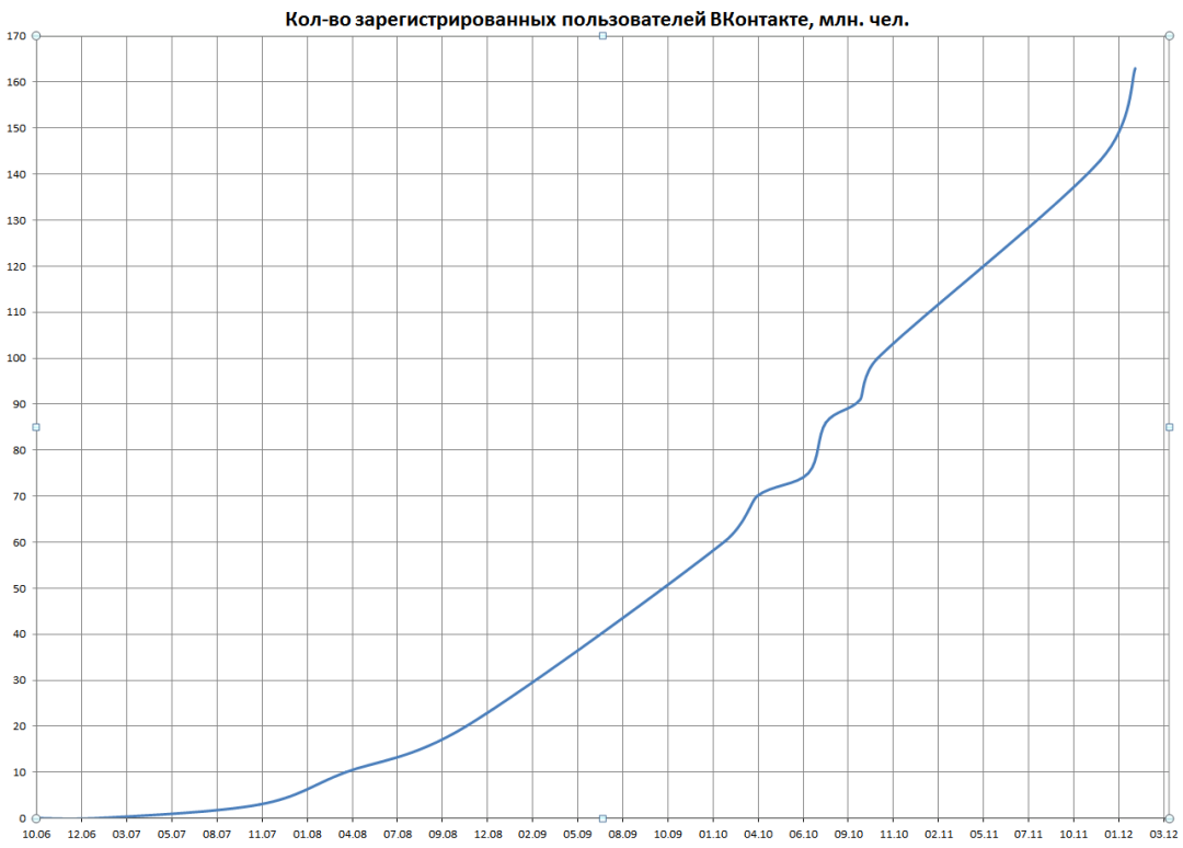 2006-2012 年間,VK 註冊用户數量|圖片來源:Wikipedia