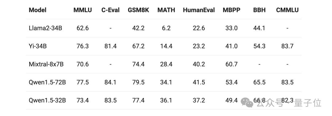 從結果上來看,Qwen 1.5-32B已經在多項評測標準中超越或追平Mixtral 8x7B: