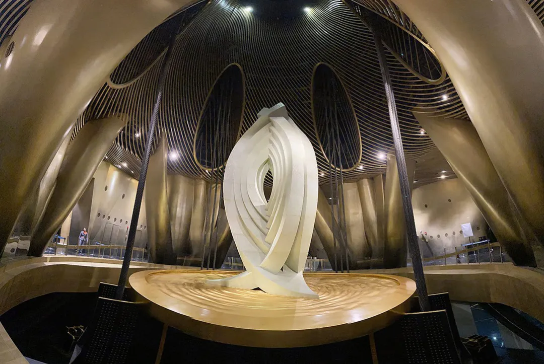 當強風吹向大廈時,質量巨大的風阻尼器會朝着反方向擺動,從而保證了上海中心大廈的安全。