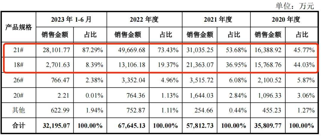 **隨着LG新能源21700鋰電池產銷量的提高,配套的21#組合蓋帽的銷售金額逐年增長。**報告期內,該型號產品的銷售金額佔動力型組合蓋帽的比例分別為45.77%、53.68%、73.43%和87.29%。