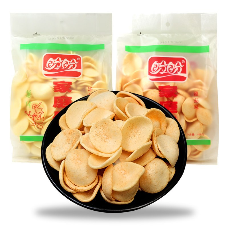 那時候的市場上,既有像演員李秀明下海創業,靠着大家對洋品牌的嚮往,高度模仿洋品牌打造的“大家寶薯片”,同時也有這樣靠大包裝、低價格的性價比路線的盼盼薯片霸佔童年。