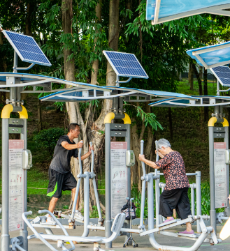 別的景區卷服務,華強北中心公園就在寸土寸金的福田區,安排24小時免費開放的户外健身房,每個器械都有動作要領以及使用方法介紹,怕被曬還裝了遮陽傘。