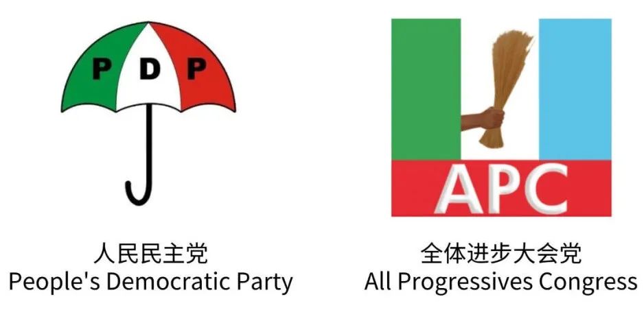 **人民民主黨:**是尼日利亞的一個社會保守主義政黨,屬於中右翼政黨。在1999年至2011年期間,該黨贏得了全部總統選舉,是尼日利亞老牌強勢政黨。