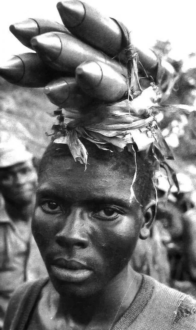 ▲1968年尼日利亞內戰期間,運送炮彈的士兵