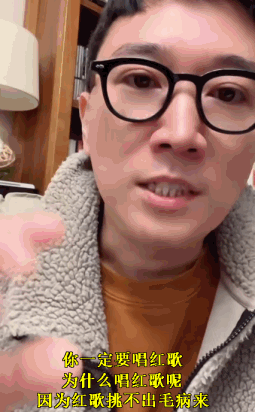 為了顯示他的初心,支招讓他唱紅歌,且以背後示人,寓意麪壁思過。