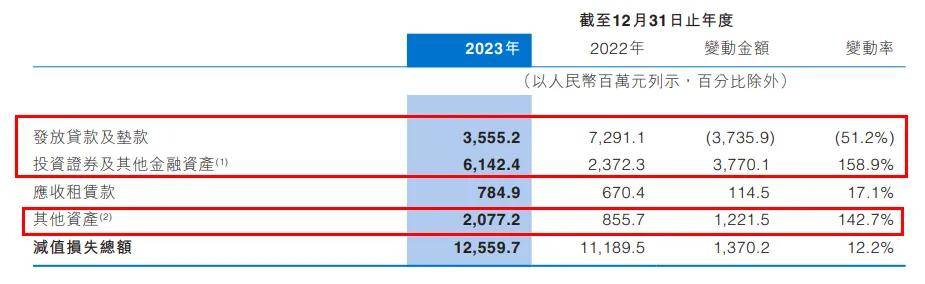 從資產減值損失構成來看,2023年該行發放貸款及墊款為35.55億元,同比下降了51.2%,投資證券及其他金融資產為61.42億元,同比上升了158.95%;其他資產為20.77億元,同比上升了142.7%。