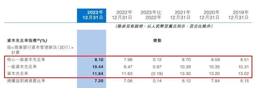 2023年報顯示,中原銀行這3項充足率中,核心一級資本充足率、一級資本充足率、資本充足率分別為8.10%、10.44%、11.64%。其資本充足率較上年減少0.19個百分點,其餘兩項均有所增加。