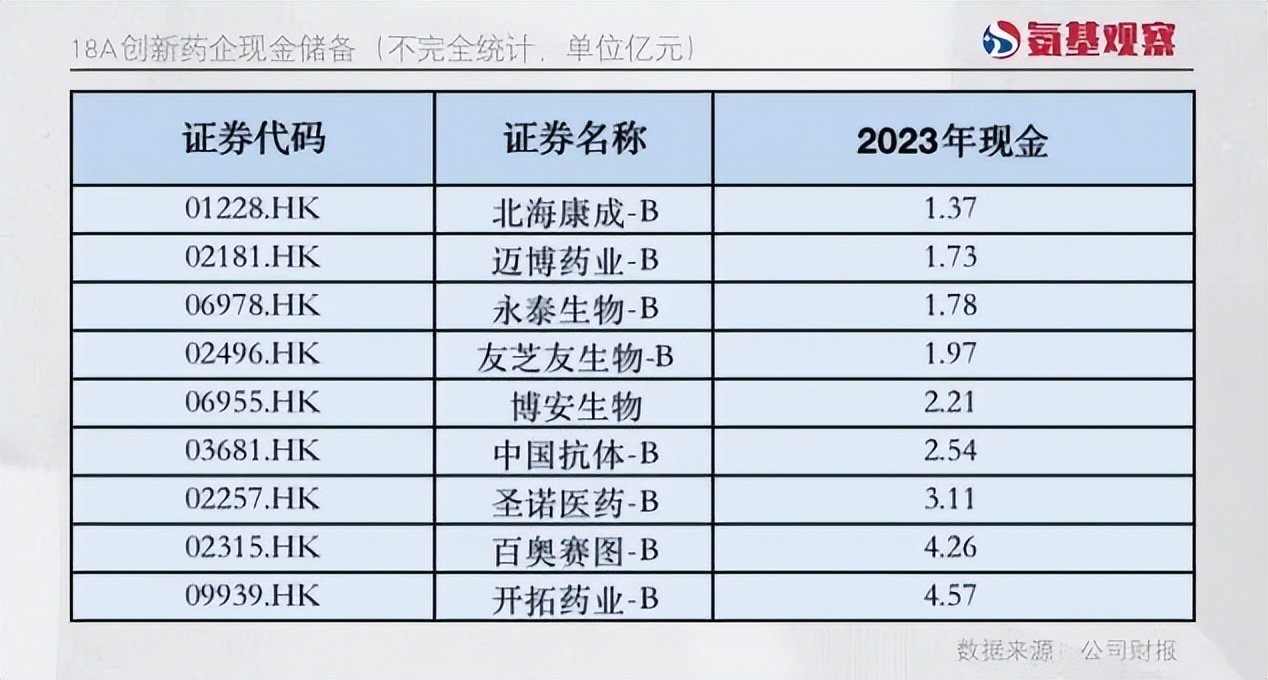 在資本市場的寒冬中,生物科技企業手中的現金儲備成為了關鍵的安全保障。現金儲備的多少,在某種程度上,決定了企業能夠承受市場波動的安全邊際。