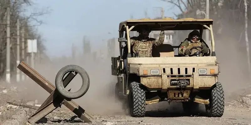 一位俄羅斯士兵駕駛一輛“爬山虎”,馳騁在剛剛佔領的阿瓦迪夫卡市區。這是一輛山東製造的 Desertcross 1000-3全地形越野車。俄軍在去年採購了超過1000輛這種全地形車,作為前線多用途戰車,因其性能優越,獲得俄軍的廣泛讚譽。