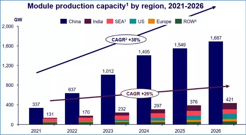 國際能源署(IEA)的數據顯示,中國光伏組件的成本比印度低10%,比美國低20%,比歐洲低35%。