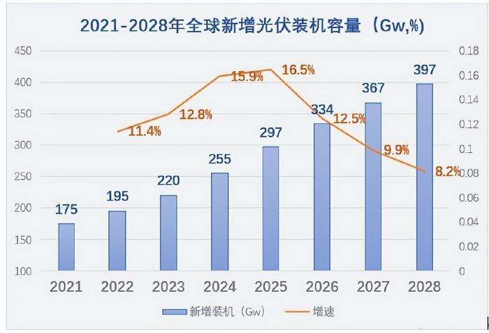 2021-2028年全球新增光伏裝機容量