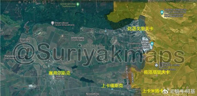 1、塞弗爾斯克東南:俄軍沿鐵路向維姆卡方向小幅推進。