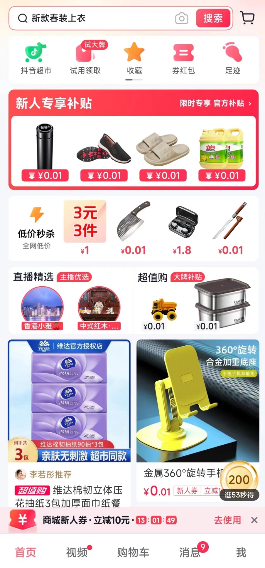 抖音商城版APP在底部TAB欄設置的視頻界面就像抖音APP的克隆版,該功能會同步用户在抖音內轉載、評論、點贊和收藏的視頻或直播內容。