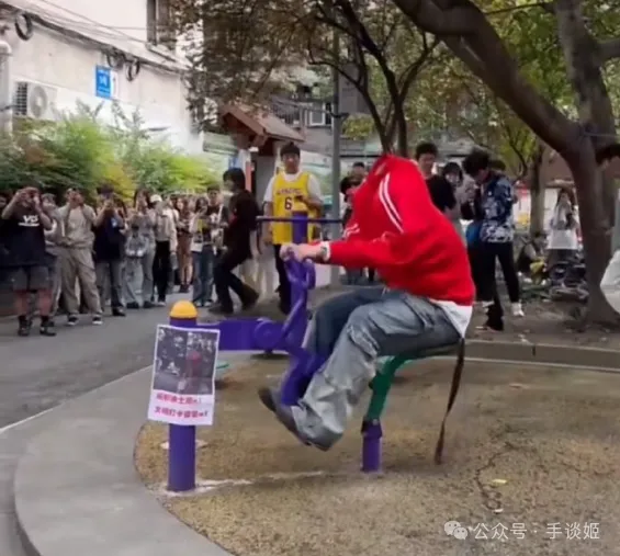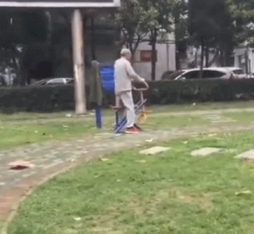 仔細觀察網友們製作的梗圖,這“成都迪士尼”的標誌不是標誌性的迪士尼大城堡,而是……小區樓下常見的健身器材。手談姬以前會給它取名叫“騎馬器”,此前雖不知它是幹什麼用的,但實際用法肯定不會是下圖老爺爺這樣強健溝子用的。