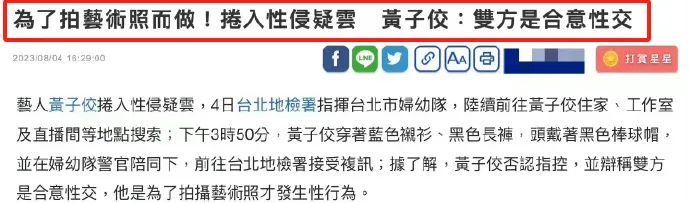 可黃子佼咬定説:雙方是合意性交,他純然為了藝術獻身。(……???)
