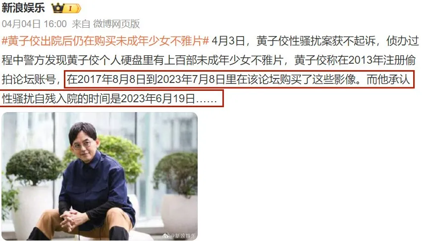 在案件調查的過程中,黃子佼又被發現新罪:藏有非法偷拍的未成年人色情視頻。