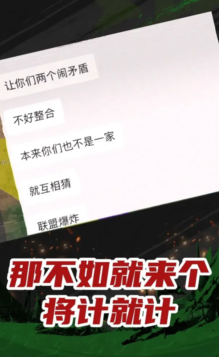 4494區裏,北部勢力青冀同盟與南部勢力荊益揚同盟正在激烈地交戰中,誰知荊州、益州忽然在世界頻道互罵了起來,互帶節奏,互罵對方背刺同盟,鬧的全區皆知。