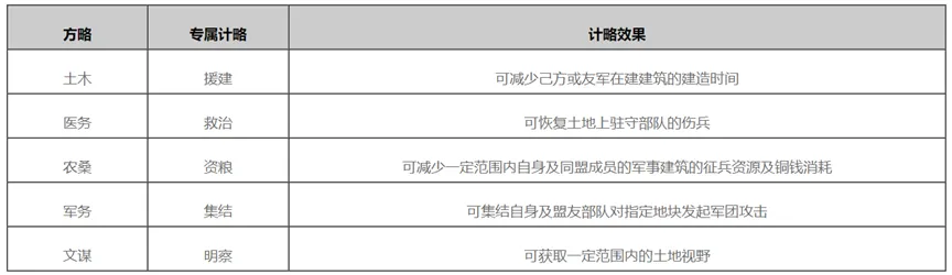 “百業”系統目前推出了“土木”、“醫務”、“農桑、”軍務“,”文謀“等五大職業,每個職業中都可以看見與率土各流派玩法的牽連,是其在流派基礎上進行更職業化的策略深化,從而為不同流派的玩家提供更多元的協作與博弈的策略體驗。