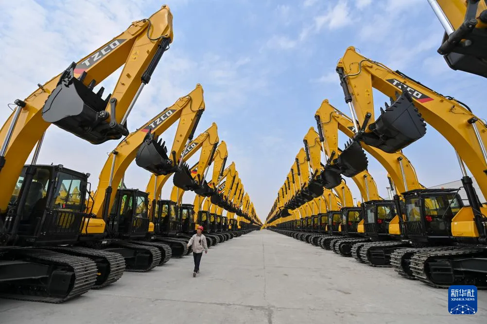 停放在山西省太重集團智能高端液壓挖掘機產業園區內等候交付的液壓挖掘機(圖源:新華社)